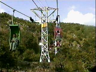 ![]() Le télécabine (ropeway) qui monte au Shanti Stupa |
